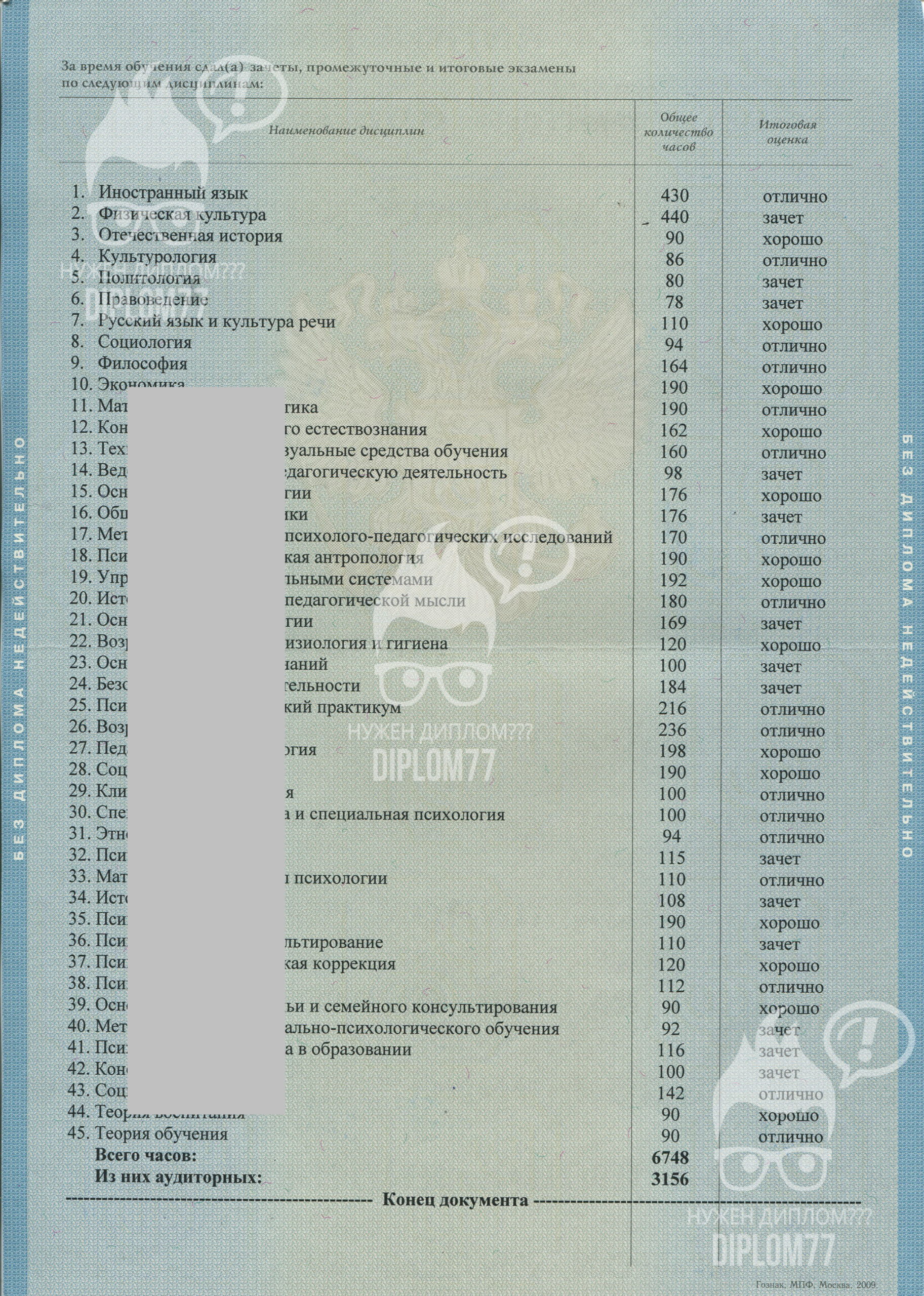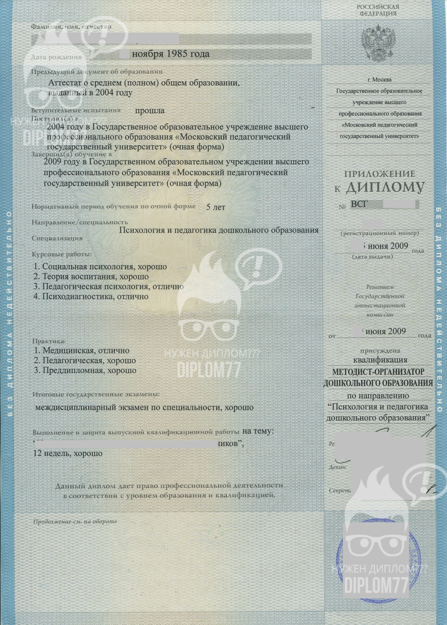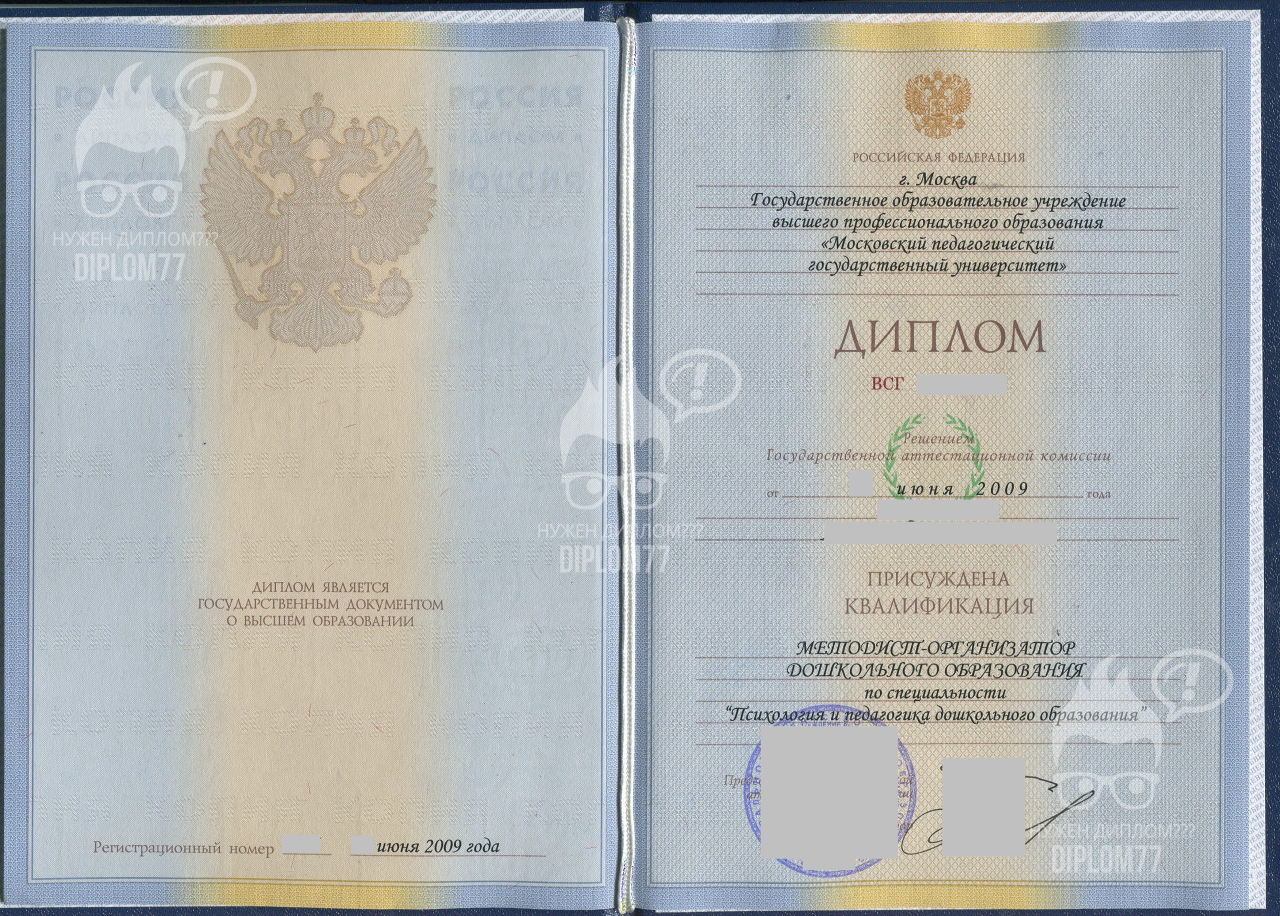 Приведу образец диплома 2009 года Московского педагогического государственного университета (МПГУ):