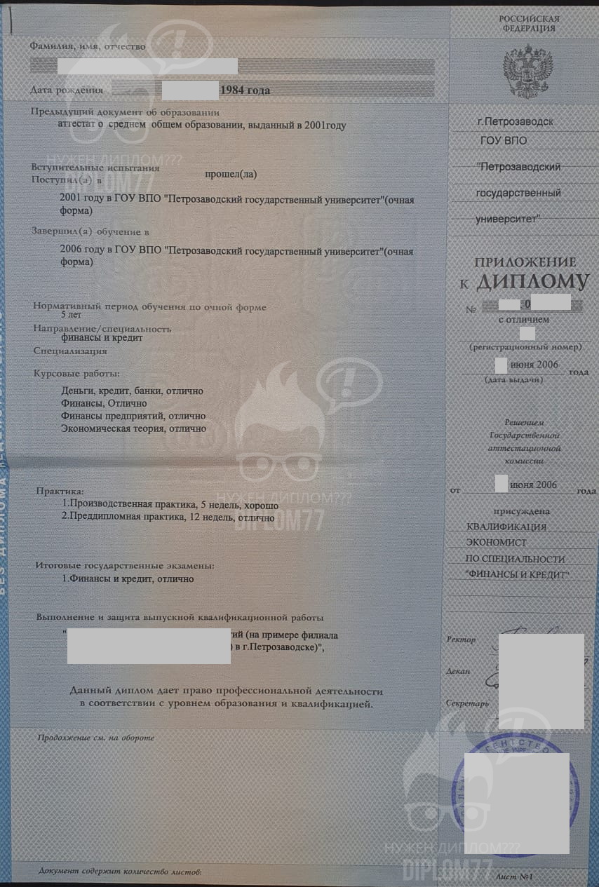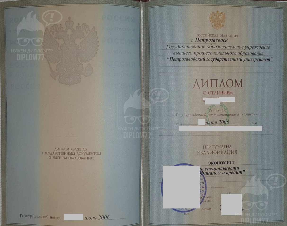 Здесь я покажу настоящий диплом ПетрГУ 2006 года выпуска.