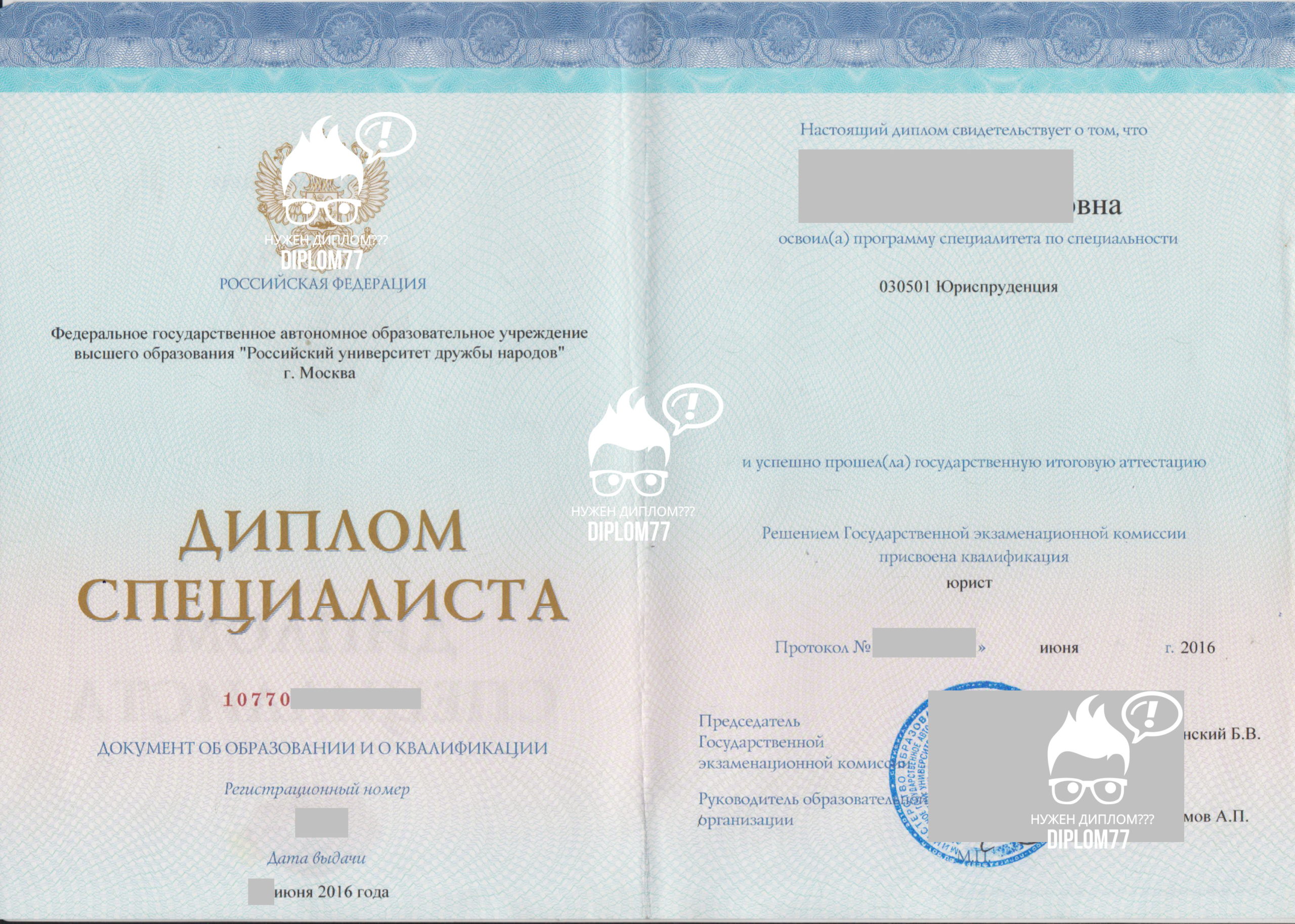 Это уже новейший диплом, который выдается на одинаковых бланках до сегодняшнего момента (2021 год). Вот образец специалиста 2016 года от типографии «Спецбланк»: