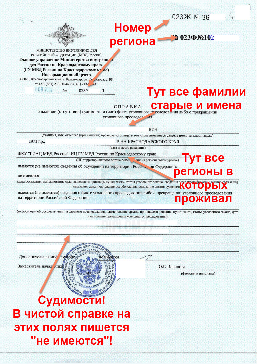 Вопрос: купить справку от полиции